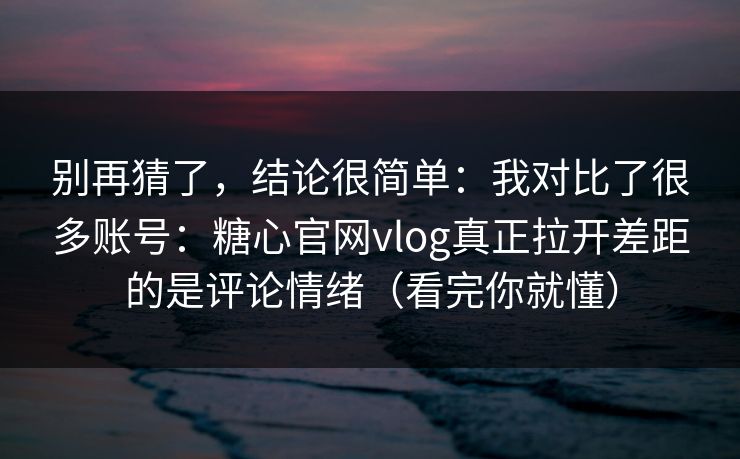 别再猜了,结论很简单:我对比了很多账号:糖心官网vlog真正拉开差距的是评论情绪(看完你就懂)