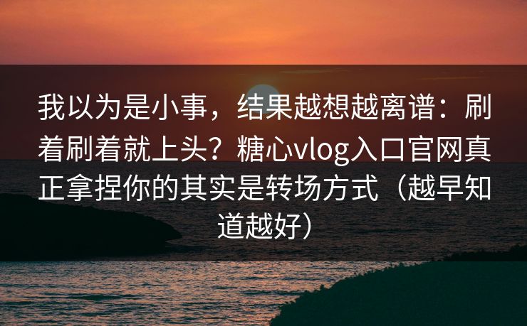 我以为是小事,结果越想越离谱:刷着刷着就上头?糖心vlog入口官网真正拿捏你的其实是转场方式(越早知道越好)