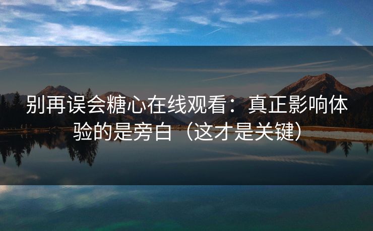 别再误会糖心在线观看:真正影响体验的是旁白(这才是关键)